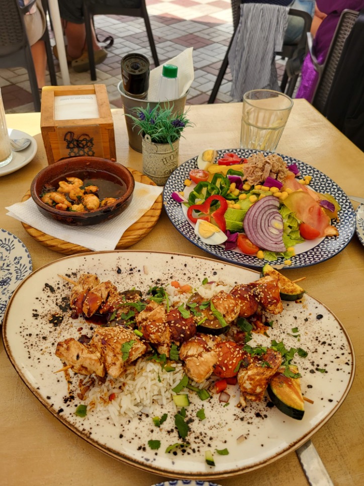 Axarquia is de streek van avocado’s, die ook vaak in salades worden verwerkt. Gambas al pil pil (gambas in een hete knoflook saus) en Pollo en vino de Cómpeta (kip in de zoete Cómpeta wijn) moeten zeker ook worden geproefd.